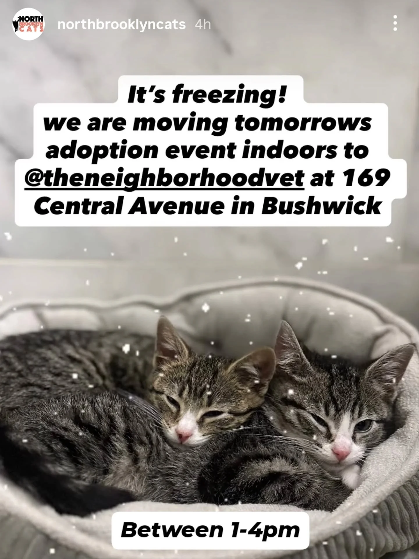 Adoption Application Weekly Adoption Events: Every Sunday Come visit our adoptable cats and kittens at Bushwick Bark on 181 Irving Ave from 1-4PM! Follow us @whiskers_agogo to meet our available cats View fullsize View fullsize View fullsize View fullsize View fullsize View fullsize View fullsize View fullsize Slide 1 Slide 1 (current slide) Slide 2 Slide 2 (current slide) Slide 3 Slide 3 (current slide) Slide 4 Slide 4 (current slide)